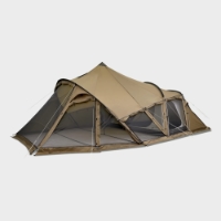 ワンポール構造をベースとしているため、4コーナーをペグダウンしてセンターポールを入れることで基礎部が自立するため、設営がスムーズにできる2ルームテントです。