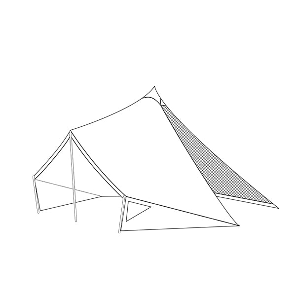 ワンポールシェルター「モーニンググローリーTC」に対応したバックパネルメッシュ仕様を加えたスキン(アウターテント)。
