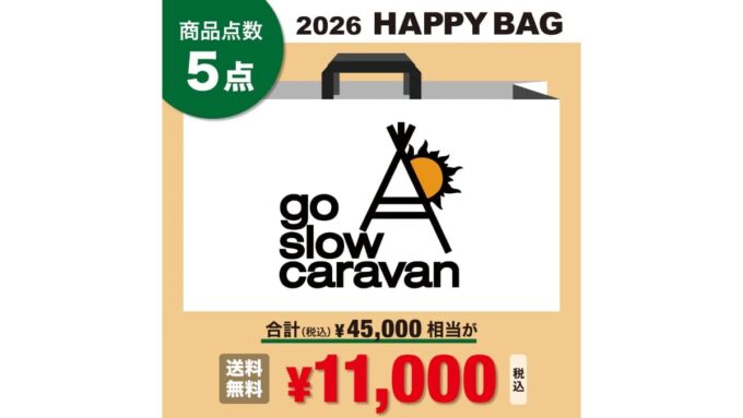 アウトドアショップ「Orange」にて予約販売しているゴースローキャラバン(go slow caravan)福袋 2026を紹介します。